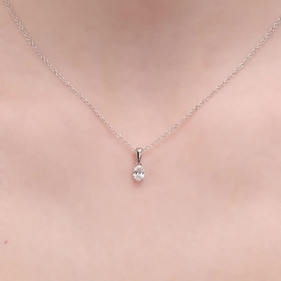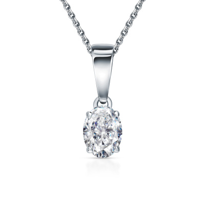 Подвеска с 1 бриллиантом выращенным, 0.42 карат, огранка овал 57 граней, цвет 3, чистота 5, тип огранки А; Белое золото 585 пробы.