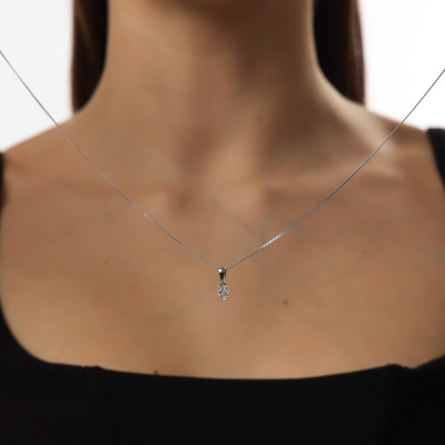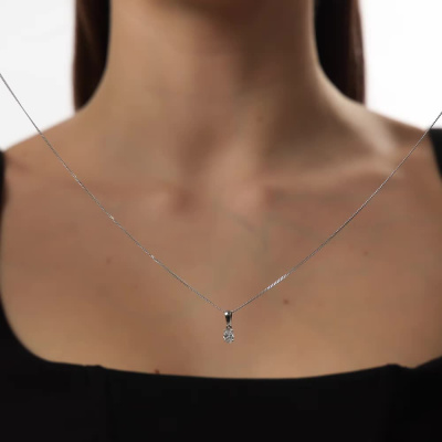Подвеска с 1 бриллиантом выращенным, 0.38 карат, огранка овал 57 граней, цвет 4, чистота 5, тип огранки А; Белое золото 585 пробы.