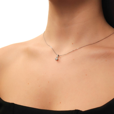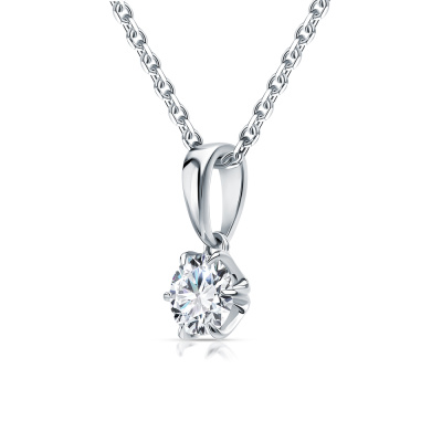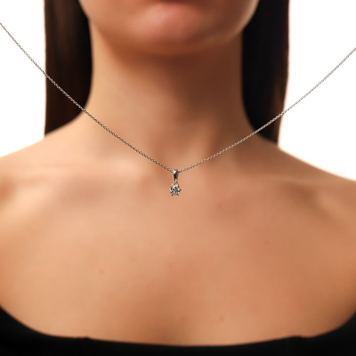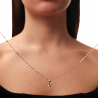Подвеска с 1 бриллиантом выращенным, 0.55 карат, огранка круг 57 граней, цвет 4, чистота 5, тип огранки А; Белое золото 585 пробы.