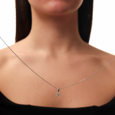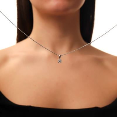 Подвеска с 1 бриллиантом выращенным, 0.53 карат, огранка круг 57 граней, цвет 4, чистота 5, тип огранки А; Белое золото 585 пробы.