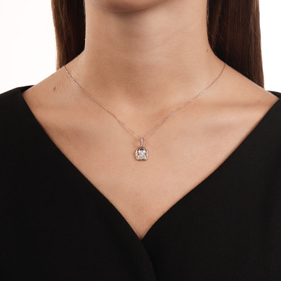 Подвеска с 6 бриллиантами природными, 0.02 карат, огранка круг 17 граней, цвет 2, чистота 2, тип огранки А; Розовое золото 585 пробы.