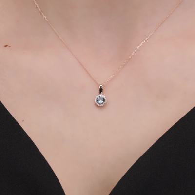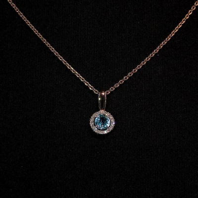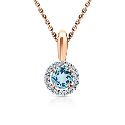 Подвеска с 16 бриллиантами природными, 0.1 карат, огранка круг 17 граней, цвет 2, чистота 2, тип огранки А; 1 топазом свисс природным, 0.53 карат; Розовое золото 585 пробы.