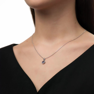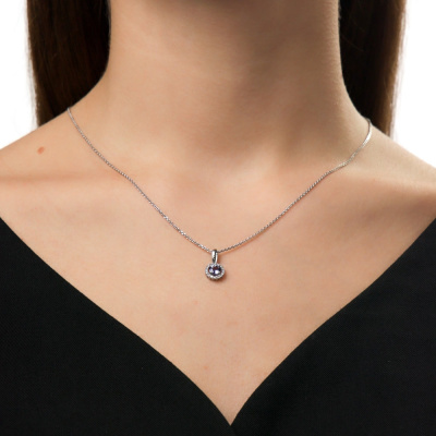 Подвеска с 16 бриллиантами природными, 0.08 карат, огранка круг 17 граней, цвет 2, чистота 2, тип огранки А; 1 танзанитом природным, 0.5 карат; Белое золото 585 пробы.