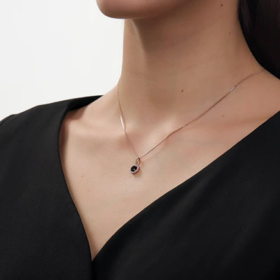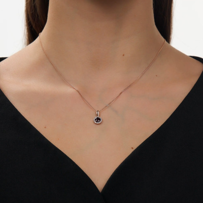 Подвеска с 16 бриллиантами природными, 0.1 карат, огранка круг 17 граней, цвет 2, чистота 2, тип огранки А; 1 гранатом природным, 0.57 карат; Розовое золото 585 пробы.
