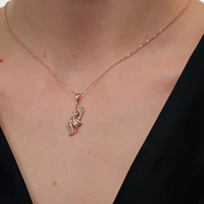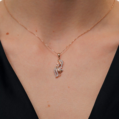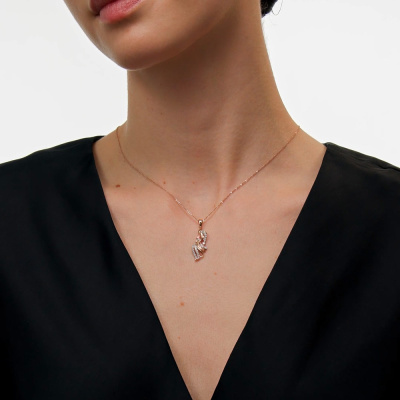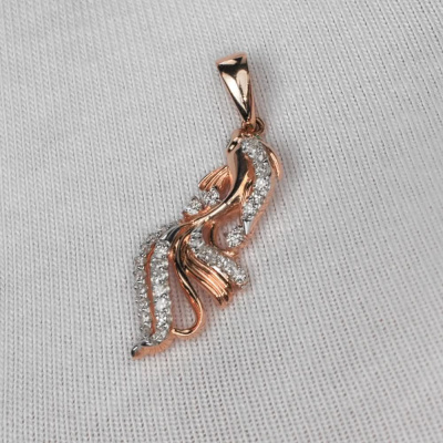 Подвеска с 3 бриллиантами природными, 0.03 карат, огранка круг 57 граней, цвет 3, чистота 6, тип огранки А; 29 бриллиантами природными, 0.16 карат, огранка круг 17 граней, цвет 2, чистота 2, тип огранки А; 2 изумрудами природными, 0.01 карат, цвет 3, чистота 3, тип огранки В; Розовое золото 585 пробы.
