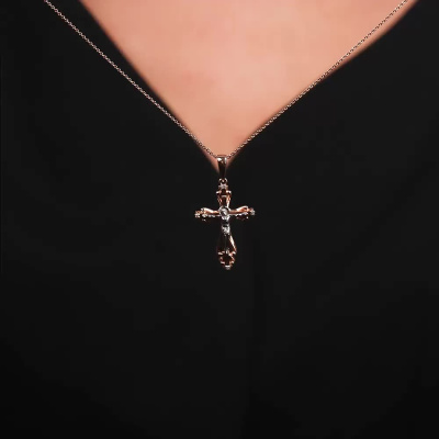 Подвеска с 4 бриллиантами природными, 0.01 карат, огранка круг 17 граней, цвет 2, чистота 2, тип огранки А; Розовое и белое золото 585 пробы.