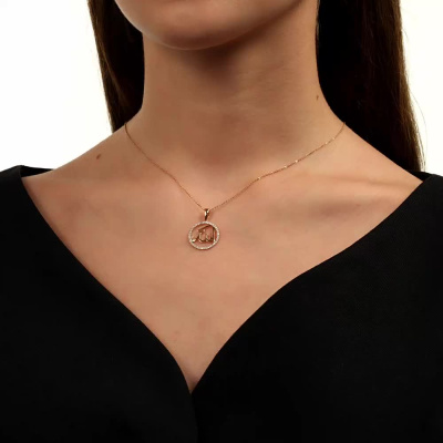 Подвеска с 40 бриллиантами природными, 0.16 карат, огранка круг 17 граней, цвет 2, чистота 2, тип огранки А; Розовое золото 585 пробы.