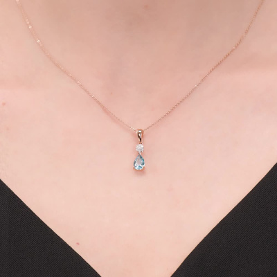 Подвеска с 7 бриллиантами природными, 0.05 карат, огранка круг 17 граней, цвет 2, чистота 2, тип огранки А; 1 топазом свисс природным, 0.73 карат; Розовое золото 585 пробы.