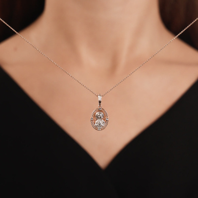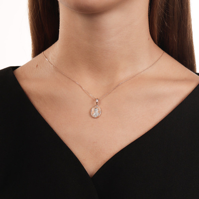 Подвеска с 4 бриллиантами природными, 0.007 карат, огранка круг 17 граней, цвет 2, чистота 2, тип огранки А; Розовое золото 585 пробы.