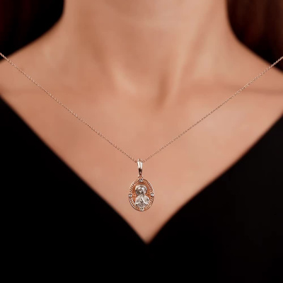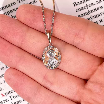 Золотая подвеска с бриллиантами "Божия Матерь Семистрельная"