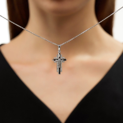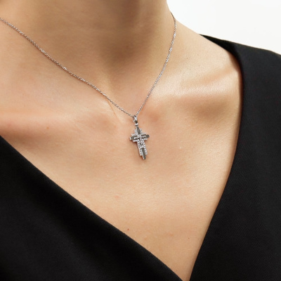 Подвеска с 30 бриллиантами природными, 0.11 карат, огранка круг 57 граней, цвет 3, чистота 5, тип огранки А; Белое золото 585 пробы.
