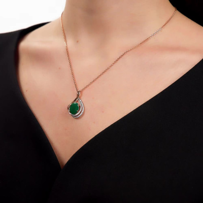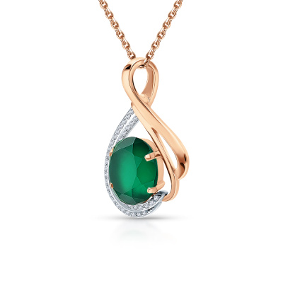 Подвеска с 43 бриллиантами природными, 0.16 карат, огранка круг 17 граней, цвет 2, чистота 2, тип огранки А; 1 ониксом зеленым природным, 4.29 карат; Розовое золото 585 пробы.