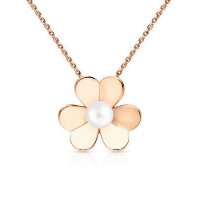 Подвеска с 1 жемчугом пресноводным культивированным белым; Розовое золото 585 пробы.