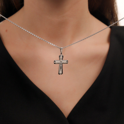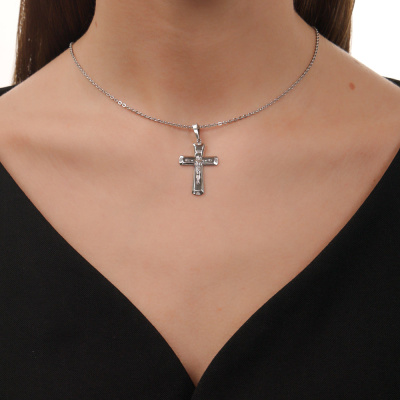 Подвеска с 4 бриллиантами природными, 0.01 карат, огранка круг 17 граней, цвет 2, чистота 2, тип огранки А; Белое золото 585 пробы.