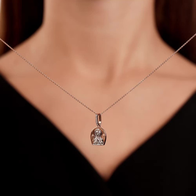 Золотая подвеска с бриллиантами "Божия Матерь Семистрельная"