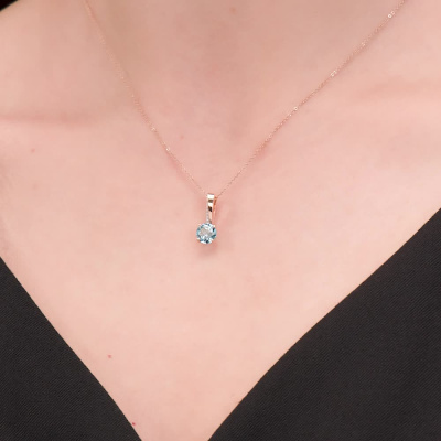 Подвеска с 9 бриллиантами природными, 0.01 карат, огранка круг 17 граней, цвет 2, чистота 2, тип огранки А; 1 топазом свисс природным, 0.85 карат; Розовое золото 585 пробы.