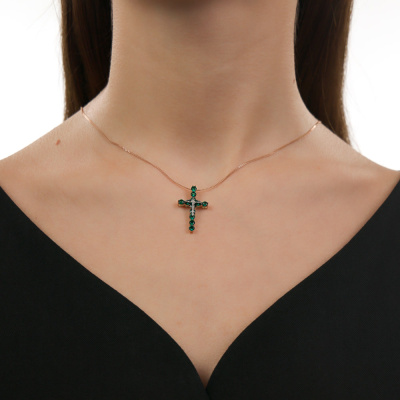 Подвеска с 12 гидротермальными изумрудами, 1.17 карат; Розовое золото 585 пробы.