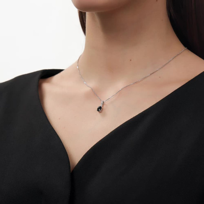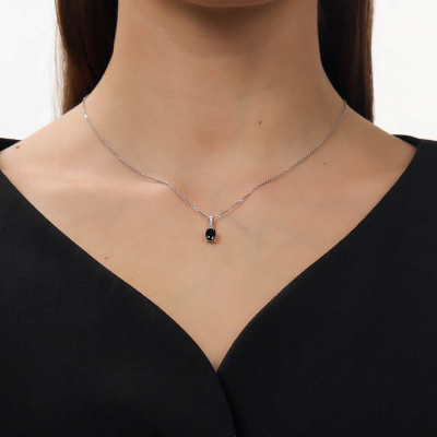 Подвеска с 1 бриллиантом природным, 0.05 карат, огранка принцесса 65 граней, цвет 3, чистота 6; 1 бриллиантом природным, 0.01 карат, огранка круг 57 граней, цвет 3, чистота 6; 1 бриллиантом природным, 0.006 карат, огранка круг 17 граней, цвет 2, чистота 3; 1 бриллиантом природным, 0.006 карат, огранка круг 17 граней, цвет 2, чистота 3; 1 бриллиантом природным, 0.006 карат, огранка круг 17 граней, цвет 2, чистота 3; 1 сапфиром природным, 1.02 карат, цвет 3, чистота 4; Белое золото 585 пробы.
