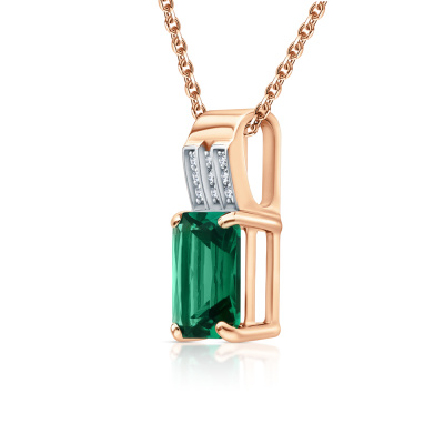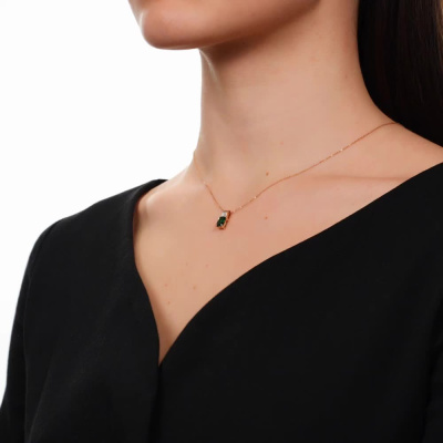 Подвеска с 9 бриллиантами природными, 0.01 карат, огранка круг 17 граней, цвет 2, чистота 2, тип огранки А; 1 гидротермальным изумрудом, 0.77 карат; Розовое золото 585 пробы.