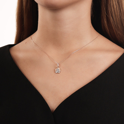 Подвеска с 6 бриллиантами природными, 0.02 карат, огранка круг 17 граней, цвет 2, чистота 2, тип огранки А; Розовое золото 585 пробы.