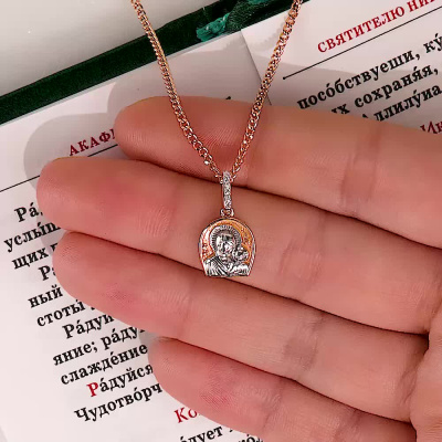 Золотая подвеска с бриллиантами "Казанская Божия Матерь"