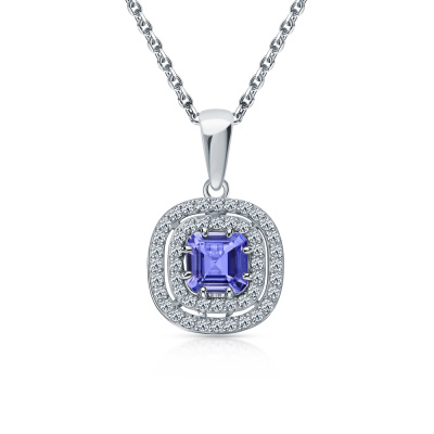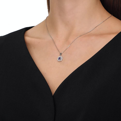 Подвеска с 48 бриллиантами природными, 0.2 карат, огранка круг 17 граней, цвет 2, чистота 2, тип огранки А; 1 танзанитом природным, 0.76 карат; Белое золото 585 пробы.