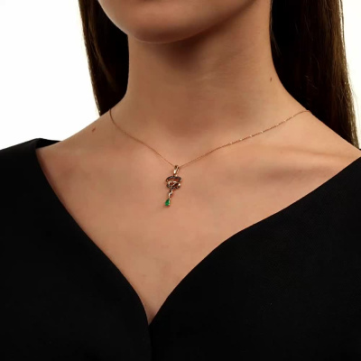 Подвеска с 13 бриллиантами черными природными облагороженными, 0.05 карат, огранка круг 57 граней, цвет 7, чистота 6, тип огранки А; 1 агатом зеленым природным; Розовое золото 585 пробы.