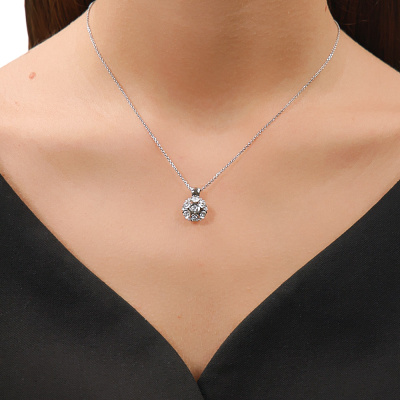 Подвеска с 1 бриллиантом природным, 0.11 карат, огранка круг 57 граней, цвет 3, чистота 6, тип огранки А; 6 бриллиантами природными, 0.48 карат, огранка круг 57 граней, цвет 3, чистота 6, тип огранки А; 6 бриллиантами природными, 0.04 карат, огранка круг 57 граней, цвет 3, чистота 6, тип огранки А; Белое золото 585 пробы.