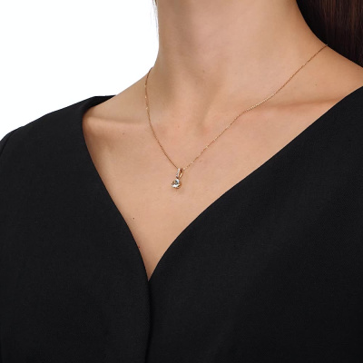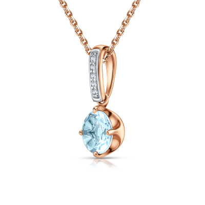 Подвеска с 5 бриллиантами природными, 0.01 карат, огранка круг 17 граней, цвет 2, чистота 2, тип огранки А; 1 топазом скай природным, 1 карат; Розовое золото 585 пробы.