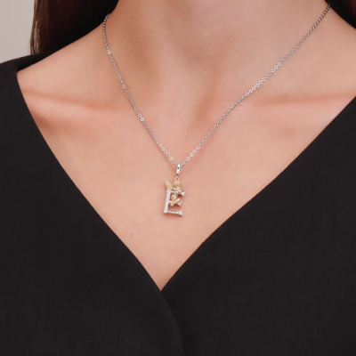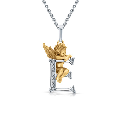 Подвеска с 2 бриллиантами природными, 0.01 карат, огранка круг 57 граней, цвет 3, чистота 6, тип огранки А; 12 бриллиантами природными, 0.03 карат, огранка круг 57 граней, цвет 3, чистота 6, тип огранки А; Желтое и белое золото 585 пробы.