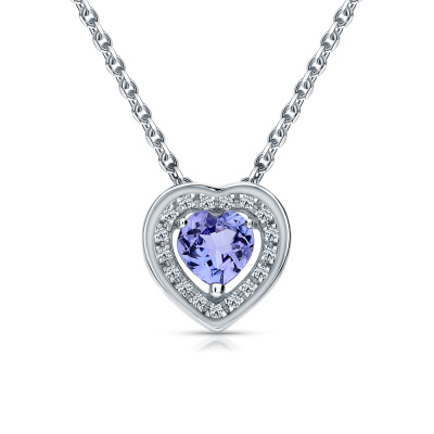 Подвеска с 17 бриллиантами природными, 0.05 карат, огранка круг 17 граней, цвет 2, чистота 2, тип огранки А; 1 танзанитом природным, 0.44 карат, тип огранки Б; Белое золото 585 пробы.