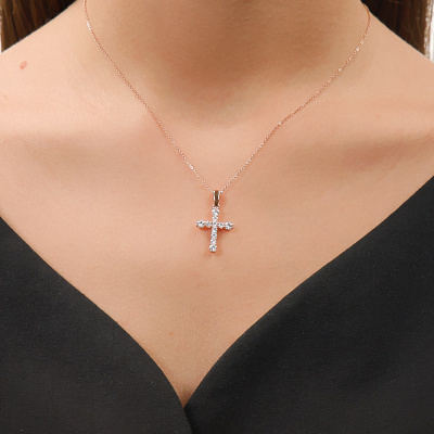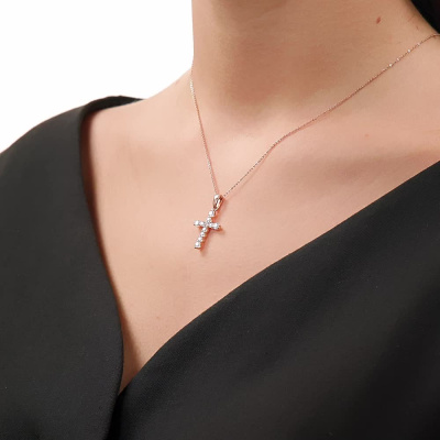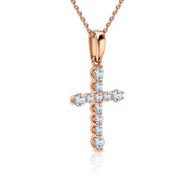 Подвеска с 4 бриллиантами природными, 0.42 карат, огранка круг 57 граней, цвет 3, чистота 6, тип огранки А; 7 бриллиантами природными, 0.34 карат, огранка круг 57 граней, цвет 3, чистота 6, тип огранки А; Розовое золото 585 пробы.
