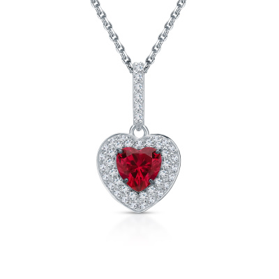 Подвеска с 1 рубином выращенным, 1.07 карат; 43 бриллиантами выращенными, 0.29 карат, огранка круг 57 граней, цвет 3, чистота 5, тип огранки А; Белое золото 585 пробы.