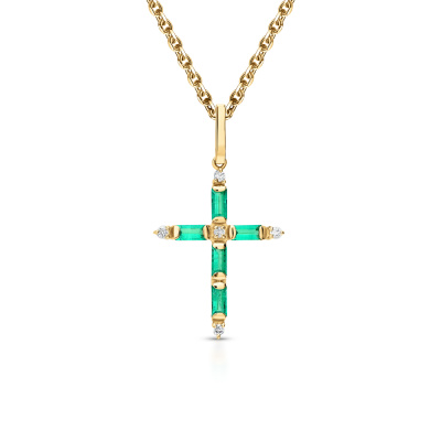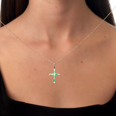 Золотая подвеска с бриллиантами выращенными и изумрудами выращенными