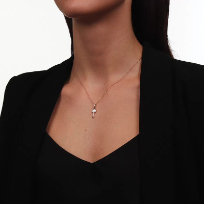 Подвеска с 1 перламутром белым природным; Розовое золото 585 пробы.