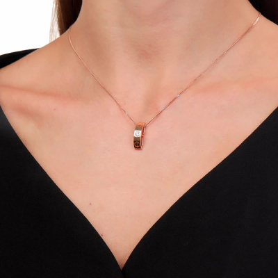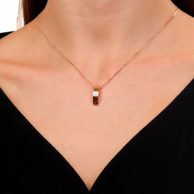 Подвеска с 1 бриллиантом природным, 0.04 карат, огранка круг 57 граней, цвет 3, чистота 6, тип огранки А; Розовое золото 585 пробы.