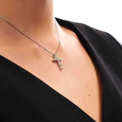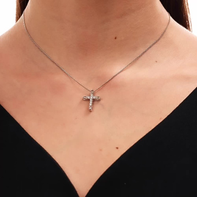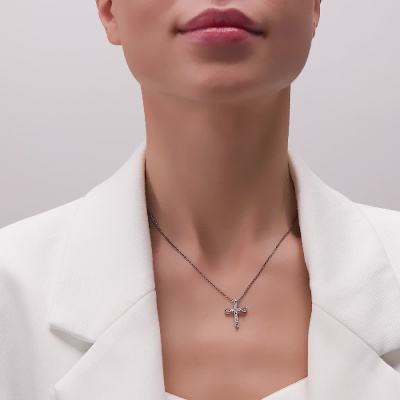 Подвеска с 4 бриллиантами природными, 0.32 карат, огранка багет 25 граней, цвет 3, чистота 3, тип огранки А; 7 бриллиантами природными, 0.21 карат, огранка круг 57 граней, цвет 3, чистота 6, тип огранки А; Белое золото 585 пробы.