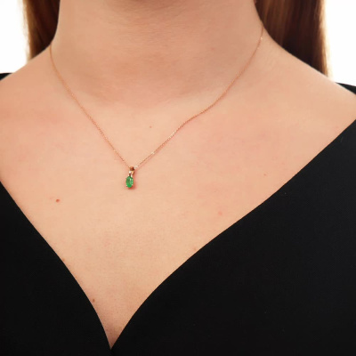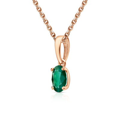 Подвеска с 1 изумрудом природным, 0.39 карат, цвет 3, чистота 3, тип огранки Б; Розовое золото 585 пробы.