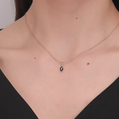 Подвеска с 1 сапфиром природным, 0.58 карат, цвет 2, чистота 2, тип огранки Б; Розовое золото 585 пробы.