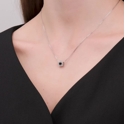 Подвеска с 20 бриллиантами природными, 0.04 карат, огранка круг 17 граней, цвет 2, чистота 2, тип огранки А; 1 сапфиром природным, 0.35 карат, цвет 2, чистота 2, тип огранки В; Белое золото 585 пробы.