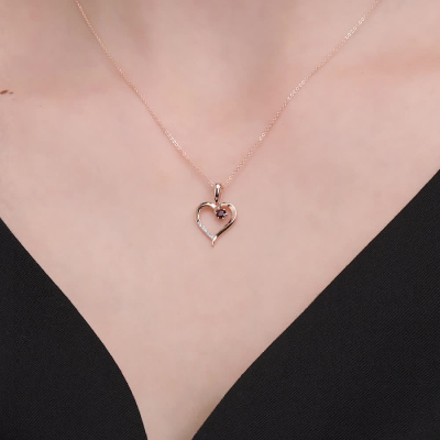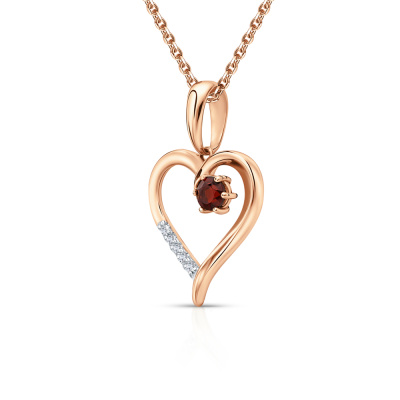 Подвеска с 5 бриллиантами природными, 0.02 карат, огранка круг 17 граней, цвет 2, чистота 2, тип огранки А; 1 гранатом природным, 0.14 карат; Розовое золото 585 пробы.