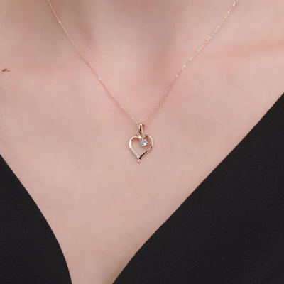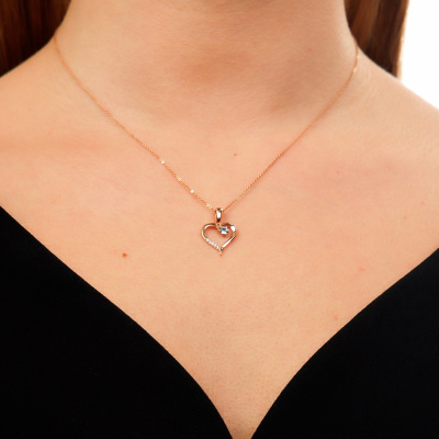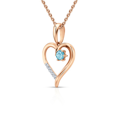 Подвеска с 5 бриллиантами природными, 0.02 карат, огранка круг 17 граней, цвет 2, чистота 2, тип огранки А; 1 топазом свисс природным, 0.13 карат; Розовое золото 585 пробы.