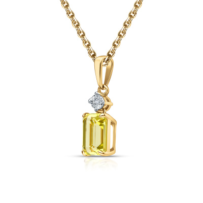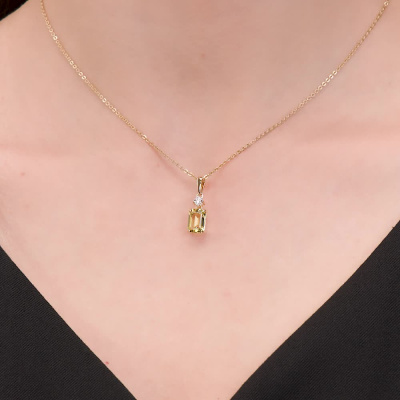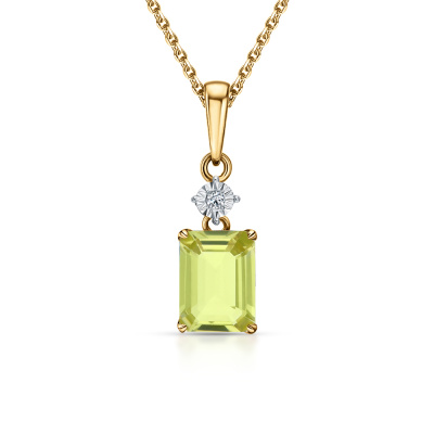 Подвеска с 1 бриллиантом природным, 0.008 карат, огранка круг 17 граней, цвет 2, чистота 2, тип огранки А; 1 кварцем лимонным природным, 1.38 карат; Желтое и белое золото 585 пробы.