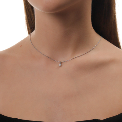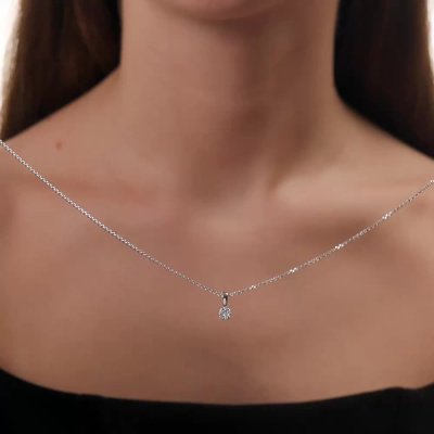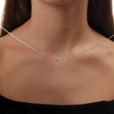 Подвеска с 1 бриллиантом выращенным, 0.02 карат, огранка круг 57 граней, цвет 2, чистота 5; 6 бриллиантами выращенными, 0.09 карат, огранка круг 57 граней, цвет 2, чистота 5; Серебро 925 пробы.