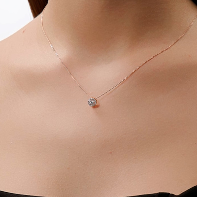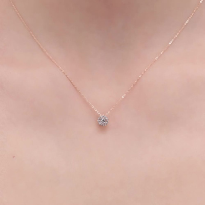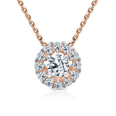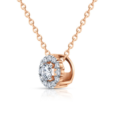 Подвеска с 1 бриллиантом выращенным, 0.12 карат, огранка круг 57 граней, цвет 3, чистота 6, тип огранки А; 12 бриллиантами выращенными, 0.08 карат, огранка круг 57 граней, цвет 3, чистота 6, тип огранки А; Розовое золото 585 пробы.