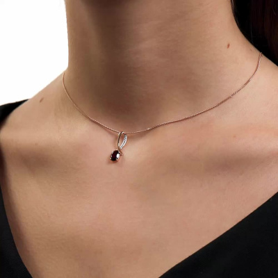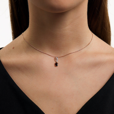 Подвеска с 3 бриллиантами природными, 0.01 карат, огранка круг 17 граней, цвет 2, чистота 2; 1 гранатом природным, 0.96 карат; Розовое золото 585 пробы.