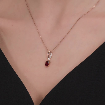 Подвеска с 3 бриллиантами природными, 0.01 карат, огранка круг 17 граней, цвет 2, чистота 2; 1 гранатом природным, 0.94 карат; Розовое золото 585 пробы.