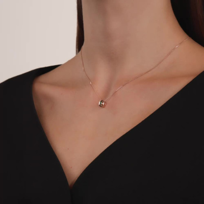 Подвеска с 1 изумрудом природным, 0.05 карат, цвет 3, чистота 3, тип огранки В; Розовое золото 585 пробы.