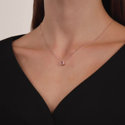 Подвеска с 1 рубином природным, 0.07 карат, цвет 2, чистота 2, тип огранки В; Розовое золото 585 пробы.
