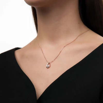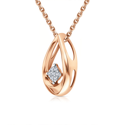 Подвеска с 7 бриллиантами природными, 0.03 карат, огранка круг 17 граней, цвет 2, чистота 2, тип огранки А; Розовое золото 585 пробы.